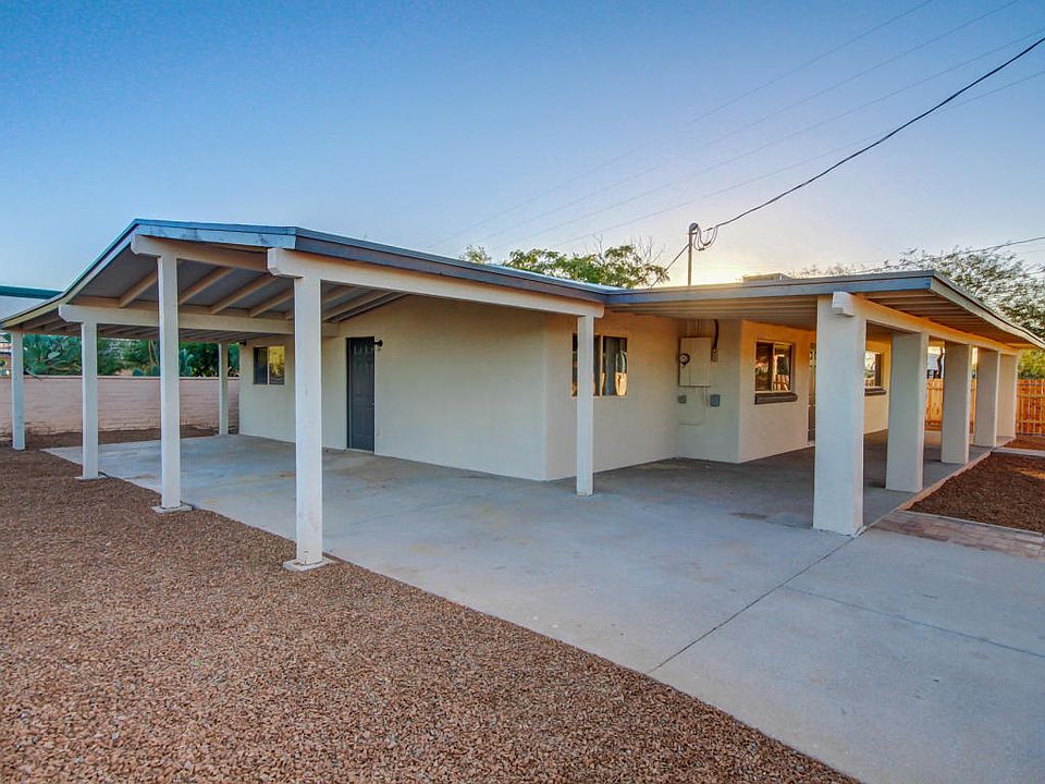 Spacious 4 bedroom, 2 bath home in a central Tucson location! Premium corner fenced lot w/new xeriscaping, 2 vehicle carport & extended covered patio in front. Split floor plan w/two tone paint, new 6X24 wood looking ceramic tile flooring & baseboards t/o. New carpet & pad in bedrooms. Large living area w/fireplace. Fully remodeled kitchen w/granite counters, decorative backsplash, stainless steel appliances and cabinets. Upgraded 6 panel interior doors. New A/C cooling, electric water heater & dual pane windows. Remodeled baths with new vanity cabinets, mirrors, brushed nickle hardware, plumbing fixtures and tile surrounds w/deco accents in both showers. Spacious master suite. Laundry room has electric dryer hook ups. All this and it's not a short sale or REO, Agent/Owner.