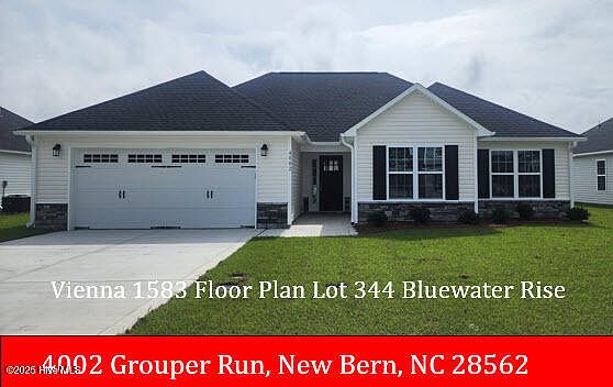 ''Vienna 1583'' floor plan is nearing completion in Bluewater Rise. Upgraded with laminate floors in the family room & master bedroom! $10,000 buyers closing cost assistance with use of preferred closing attorney. This impressive split floor plan features a large family room w/ gas log fireplace, Vaulted ceilings, granite counter tops, & a spacious master bedroom suite w/ private bath & walk-in closet. Quick commute to Cherry Point MCAS and Downtown New Bern.
