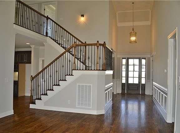 Backs To Tree Row! Private Covered Back Porch. 2 Beds and Office Down. Sand and Finish Hardwood Including Master, Gorgeous Trim Detail, Massive Bonus Room! 3 car side entry, All brick, sidewalk community!