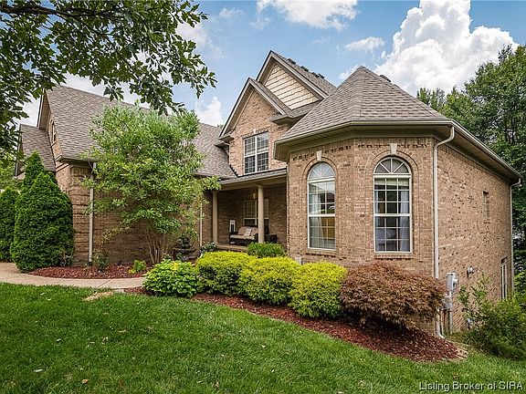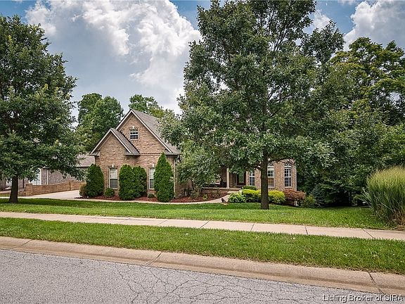 Beautifully maintained 1.5 story, spacious brick home w 3 car garage & combined 4,258 sq ft living space in award winning Floyd Co & prestigious Woods of Lafayette. Recessed lot allows for extra privacy and enhances the feel of being nestled under a canopy of trees. Great curb appeal and beautiful covered porch. As you enter, you're awed by soaring 18' ceilings and the feel of comfort. You’ll love the formal dining room with coffered ceilings, wood floors, and a large double window that brings in loads of light. Custom kitchen is expansive, w abundance of cabinetry/pantry, quartz counter tops, large eat in counter & nook, plus a wonderful screened in porch off the kitchen that opens to the top deck. Larger sized first floor laundry and spacious 1st floor main bedroom with private bath and large walk-in closet. Crown molding throughout, Juliet balcony, built-ins, new carpet in main and second floor. New roof! Finished walk out basement w/ full bath, huge bedroom with large walk-in closet, and a home office. Breathtaking private area for relaxation off bottom back deck, charming pergola, bottom patio with retaining wall, perfect for al fresco dining retreat after a busy day! Irrigation system, double-hung windows, with so many details and many upgrades! Immerse yourself in the tranquil surroundings and enjoy what feels like country living just a few minutes to downtown Louisville. Contact us now to schedule a viewing and take the first step towards owning this stunning home!
