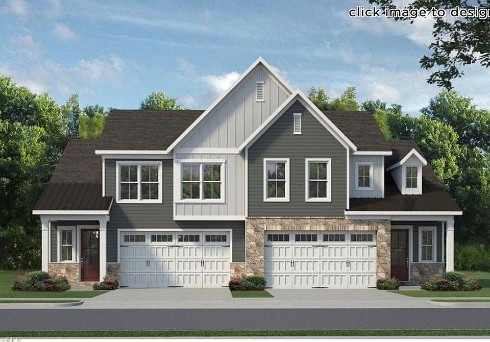 The Five Peaks plan, Elevation C (left side) Destination Villas by Garman Homes in Montrose Village at Grandover. Features 9' smooth ceilings, soft-close doors on all cabinets, and a kitchen with Solid surface countertops, and stainless steel appliances. A professional designer has curated all color selections (some are subject to change). Two cars attached garage, Montrose Village HOA includes lawn maintenance, Grandover HOA includes Community pool and racket club on Pemberton with Fitness center, playground, clubhouse, and tennis courts. The tax value is undetermined since the property