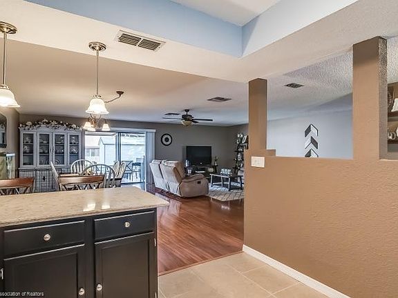 Spacious, Spotless Split floorplan. Nice tiled walkway leads you into oversized foyer. Open kitchen, huge living and dining. Great home for entertaining! A kitchen a cook would love with dark cabinets and quartz counters. Breakfast bar with stainless Steele appliances. Relax on the screened room with your morning coffee! Large corner lot. Metal roof. Come take a look, a perfect family home, move in ready.