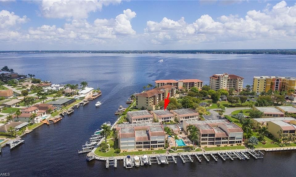 Freshly Updated, Ground Floor Corner Unit Condo with Direct River Access, Single Car Deeded Garage and Your Own Boat Slip. You can't go wrong with this one! New Kitchen Cabinets, Counters & Appliances. New A/C. Beautifully Updated Bathrooms featuring a Large Master En-Suite, Tile Throughout, Large Living Space, Big Laundry Room and a Flex Space gives you 1300+ sq foot. Enjoy your morning coffee or evening cocktails from one of the waterfront Community Tiki's. Take a walk thru Jaycee Park or Call the Nickle Ride to enjoy the Downtown Cape Coral Entertainment District. Perfect for Snowbirds or Year Around Living.