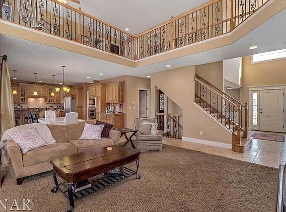 Stunning custom 1.5 story in Eagle View Estates with open floor plan! This 5 bedroom, 4.5 bath home boasts HUGE fenced yard w/ stone patio, professional landscaping for privacy, brick edging & 1/2 court concrete basketball area! Beautiful 2-story great room w/ tons of windows/light, gas fireplace & loft overlook opens to gourmet kitchen w/ abundant Amish cabinets w/ pull out shelves & many other upgrades, granite tops, tile backsplash & stainless appliances! 1st floor master w/ lighted trey ceiling, HUGE WIC & en suite bath w/ tile shower, jetted tub & double vanity! 2nd floor includes 3 bedrooms, loft & 2 baths (one bed w/ private bath)! Finished basement w/ theater room, family room w/ 2nd gas fireplace, full bath & 5th bedroom w/ WIC! A rare find!