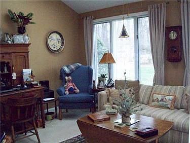 Comfy cozy condo that is move in ready! Open layout is super for entertaining. Eat in kitchen with new corian countertops and one piece sink. Wonderful storage. Large walk in closet in master bedroom and large master bath. Cozy fireplace in living room. Private patio out back. Surrounded by woods in a private setting.