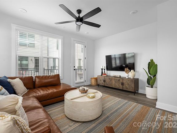 This Tremont Station end unit is packed with premium upgrades and customization that start in the garage with a fully finished, showroom-ready space boasts an epoxy-coated floor, Gladiator storage system, and an EV-charging outlet. Inside you will find wide-plank luxury vinyl flooring on every level, paired with whole-house custom blinds and California Closet systems for effortless style and order. All three baths elevate daily routines with designer tile and spa-inspired details. Move deeper into the home, the chef’s kitchen has a 5-burner gas range, LG ThinQ refrigerator, and a custom herringbone backsplash.The secondary bedroom’s wood-panel accent wall and a loft complete with wet bar, wine fridge, and floating shelves add style and versatility, while a spacious outdoor terrace extends entertaining under the Carolina sky. From garage to rooftop terrace, you’ll find premium upgrades at every turn. Enjoy turnkey, low-maintenance living minutes from South End, Uptown, & the light rail.