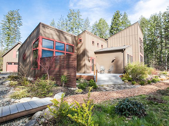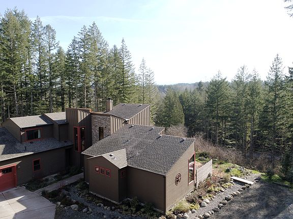 Rural modern luxury in private gated community on 20 acres. Over 4000 sq ft of exquisite craftsmanship. The architect left no wish unfulfilled in designing this home & the builder took extraordinary care in crafting each detail. The floors consist of maple, cherry & travertine. Custom kitchen cabinets, stone counters, high-end appliances, butler's pantry w/wine fridge. Pickled pine, vaulted ceilings and beams frame the stunning views of Mt. Rainier. Detached garage w/hobby rm, bath, kitchenette