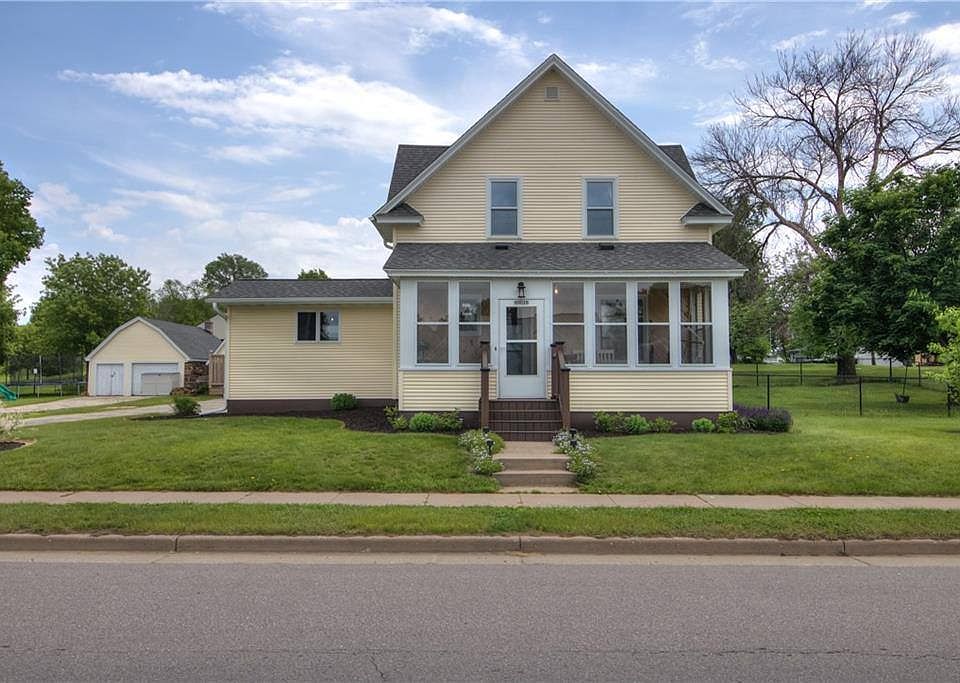 100+ year old masterpiece is full of charm and character. This 3 Bedroom, 2 baths home sits on a large manicured lawn (double lot) with 2 extra double garages for storage or extra vehicles. Home features an updated kitchen, newer dining area or den, beautiful wood working, grand stair case, living room, play room, spacious bedrooms and large office space in the basement. Updates include: roof, furnace, central air hot water heater, fenced area for pets, stamped concrete patio, new deck and updated bathrooms. A must see!