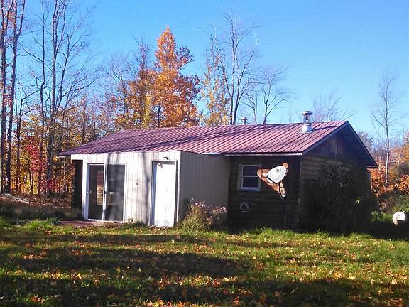 Outdoor paradise! Peace and Quiet! Camp/cabin only 30 minutes from Houghton. 2 BR 1 1/2 BA log cabin built in 1995 situated on 80 acres on Agate Beach Road. The Elm River, which is known for its brook trout, runs through this property. The snowmobile trail is close by- only 1/4 mile away. Great room concept living. New furnace 2012, new hot water heater in August 2014. Some finishing work needed, some materials on site. Class A chimney in kitchen. Back porch with sliding glass doors is wired for heat. There is a 18x30 pole barn with electricity, shed and 2 older camper and trailer units all of which can be used for storage. Dish antenna. 60% of property has been logged.
