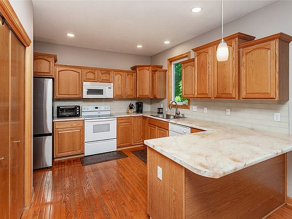 You can't beat the location of this one owner home down the street from Webster Elementary and Des Moines Christian! From the front door you have an office/den on the left and down the hall is the large kitchen with updated countertops/backsplash and a brand new refrigerator. There is a large pantry and you can seat two at the breakfast bar. All the appliances are included. Off the large eating area is the sliding glass door with a stained glass window to the deck that overlooks a large backyard. This backs to green space that includes a park, basketball court, frisbee golf course and a bike trail. Also there is an invisible fence with one collar for your pet. Off the kitchen is the family room with large windows for natural light and the fireplace. Upstairs is a huge primary bedroom with a walk in closet and brand new remodeled bath. 3 more bedrooms, a full bath, and laundry finish out the upper level. In the walk out lower level enjoy a 2nd family room with sliding glass doors to a patio. A bathroom, 5th bedroom and storage room finish out the lower level. (the storage room can be a non conforming 6th bedroom) Enjoy a beautiful landscaped backyard with no immediate neighbors behind you and additional storage under the deck that will fit a riding lawn mower. The interior has been recently painted, there are custom wood blinds throughout the home, the roof was new in 2018, AC in 2010 and new water heater in 2019. And don't forget this is in the Urbandale school district!