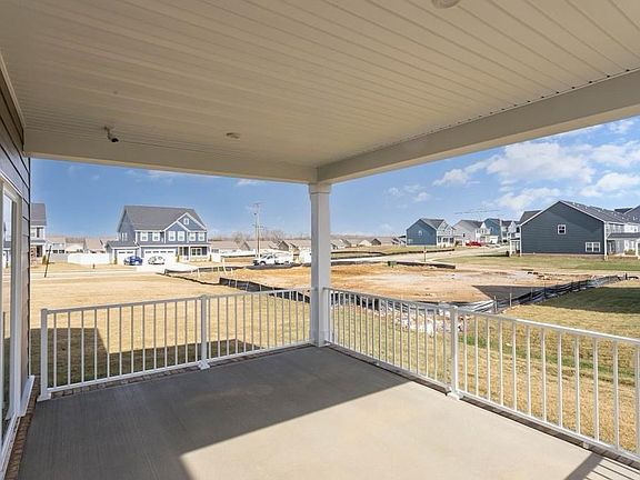 Rear covered porchStainless steel appliancesFlex roomTile backsplashQuartz countertopsIrrigation system