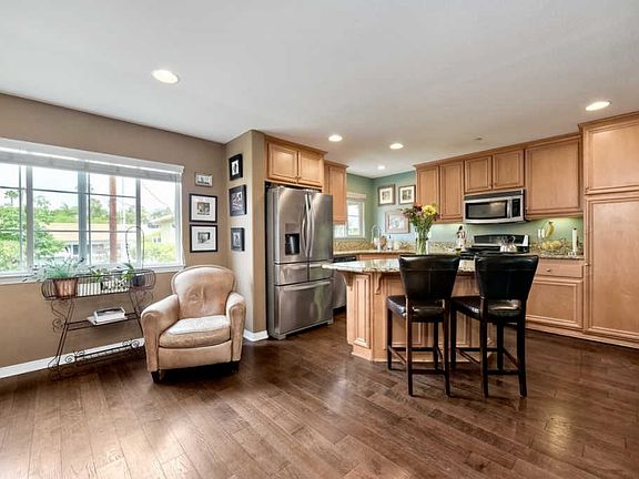 Welcome to The Bluffs in Carlsbad! Bike to the beach, village, and Outlet Mall. Hardwood & natural stone floors, granite counters, coffered ceilings, stainless steel appliances & center kitchen island bar seating. The location is perfectly positioned in the complex with no direct rear or front neighbor. Close to community pool, clubhouse and bocce ball without the noise. Original owner has taken impeccable care of this home. Energy efficient with dual pane windows and ceiling fans. Low taxes and HOA.