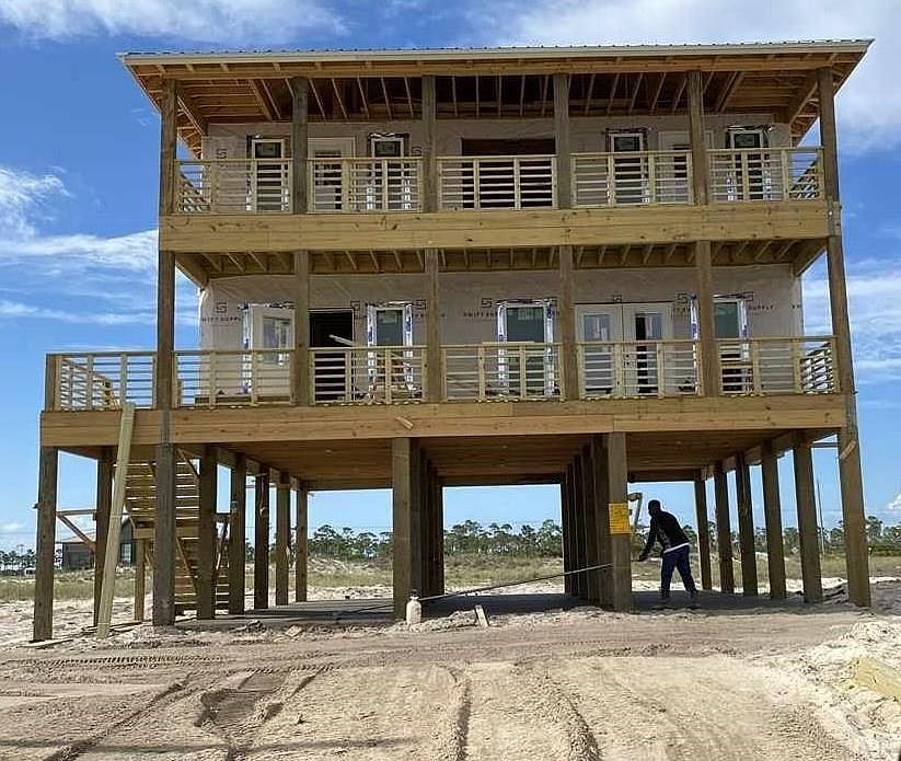 You have waited all summer for this! READY AFTER Labor Day! BRAND NEW GOLD FORTIFIED construction in popular Fort Morgan! Live your beach dreams in style - Classic style two story beach house with gulf views and beach access. Two porches - 288 sq ft each - with access from 3 of the five bedrooms. Granite countertops in kitchen and baths, custom tiling in showers. Master bedroom with balcony access on main floor; upstairs landing/den area includes wet bar and storage. Lot has plenty of room for pool to be added. Details and quotes for pool upon request.