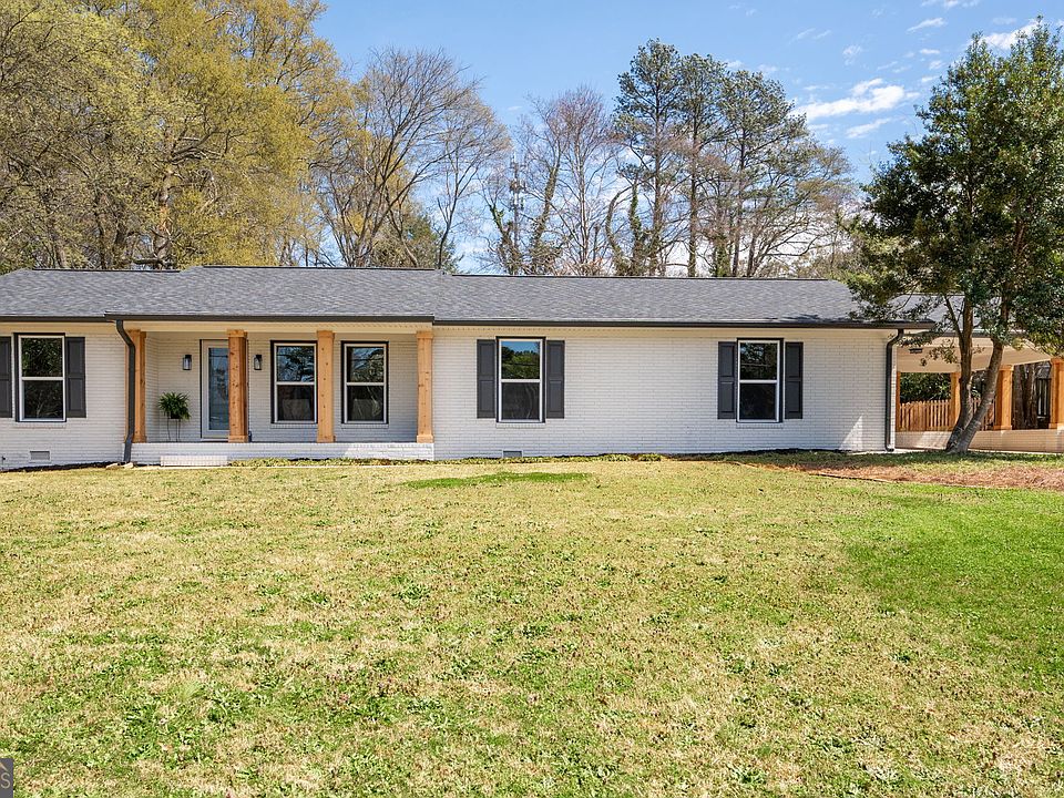 Welcome home to this fully renovated downtown Powder Springs gem! Nestled in the heart of Powder Springs, this charming one-level 4 bedroom, 2 full bath, 4-sided brick ranch home has been completely upgraded and remodeled. In addition to the many beautiful upgrades, this renovation has also addressed durability with a new roof, new windows, new vapor barrier, new main electrical panel/switches/outlets, new water heater and new blown-in insulation. Inside, the open floor plan welcomes you with new flooring, new lighting, and new paint - creating a bright and welcoming atmosphere. The open concept kitchen is stunning with new quartz countertops, white shaker cabinets, tile backsplash, black composite sink and stainless appliances. Both bathrooms have been beautifully updated with new tile, vanity, mirrors and fixtures. Outside, the new exterior paint and cedar columns create a warm welcoming curb appeal. The screened sunroom off the kitchen overlooks the level backyard and provides the perfect setting for gatherings. The very large private backyard with new front picket fence and back privacy fence offers endless possibilities, including a versatile concrete pad perfect for a basketball court, recreation area, fire pit or outbuilding. No HOA. Walk to downtown Powder Springs, the Dillard Connector Silver Comet Trailhead, the Cobb Library, Art Center, and the new Powder Springs Amphitheater.