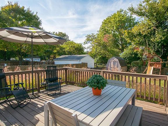 Adorable St. Matthews cottage! Wonderful location close to restaurants, retail, schools and more. Many updates such as new roof, remodeled bath, replacement windows and fully waterproofed basement to name a few. Living room is light-filled with beautiful hardwood which opens to spacious eat-in kitchen with tiled flooring and backsplash plus stainless appliances. Both bedrooms also feature hardwood floors. Bathroom has been fully updated with gorgeous vanity with granite top, tiled shower, reglazed tub and glass block window. Sellers fully waterproofed and finished versatile basement. Sump pump replaced in 2020. Outside you'll find a carport, storage shed, plus a lovely deck overlooking a sizeable and fully fenced yard.