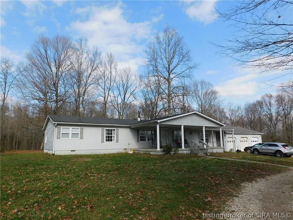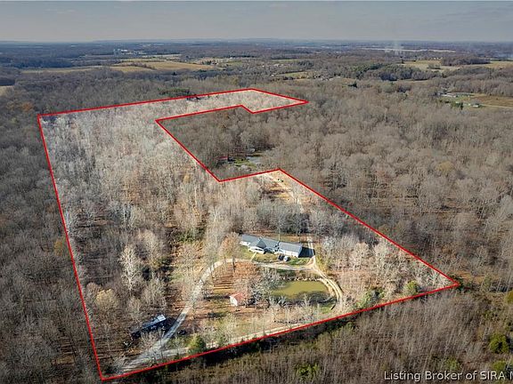 This 3 bedroom 2 bath home is situated on 24.5 secluded acres. The home is accessible by easement and also includes an easement to a home behind this home. This home does need interior cosmetic work but does have so much potential. When you step inside you will find a large open floor plan. The living room has a woodburning fireplace with built in bookshelves on each side. The family room also has built in storage and shelving. The kitchen is furnished with stove, refrigerator and dishwasher. There is a large utility room with an outside entrance. The master bedroom includes a master bath with double sinks and seperate tub and shower. Outside you will find a large covered front porch, a detached 3 car garage, a seperate lean to and a utility shed. There is also a pond. If you are looking for privacy this home has plenty to offer.