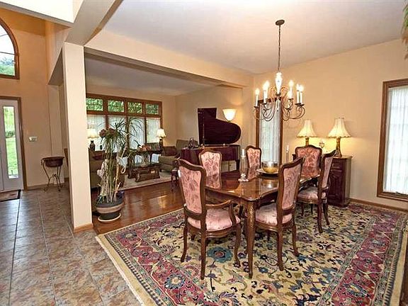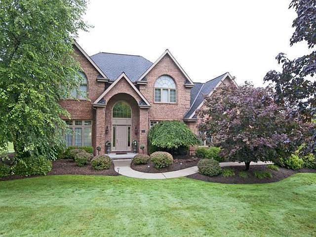 Breathtaking brick provincial set on over an acre with fabulous view of the Treesdale golf course and neighborhood. This outstanding home offers a stately brick exterior with covered front entry that opens to the splendid two story foyer with palladium windows and stunning turned staircase. French doors lead from the foyer to the handsome first floor den with beautiful built-in bookcases and floor to ceiling windows. The appealing open floor plan highlights the formal living room and dining room that offer gleaming hardwood floors and full length windows. State-of-the art appliances, an abundance of lovely maple cabinetry, exotic granite counter tops, ceramic tile floors, butlers pantry with wet bar and a wall of French doors overlooking the wooded rear yard are found in the gourmet kitchen which opens to the sunken family room. The fabulous family room is accented by a full wall of Judges paneling surrounding the gas fireplace and a full wall of glass doors leading to the expansive rear deck. The majestic master suite offers a dramatic trey ceiling, double walk-in closets and a wall of windows. A vaulted ceiling with skylight, spacious double sink vanity, an enormous tiled, walk-in shower with glass block wall, and relaxing whirlpool tub are found in the luxurious spa-like master bath. A lovely guest suite is accented by a vaulted ceiling, palladium window and a lovely private bath. Two spacious bedroom and a Jack and Jill bath complete the second floor. The lower level hosts an exceptional game room with gorgeous stone fireplace, a wet bar, media room and glass doors leading to the LL patio. An exercise room, sauna, full bath and expansive craft room or fifth bedroom are also found on the lower level. Located in Treesdale golf course community with irresistible amenities: Community center with pool, water slides, fitness center, basketball and tennis courts party rooms, playgrounds and monthly activities for all ages to enjoy!