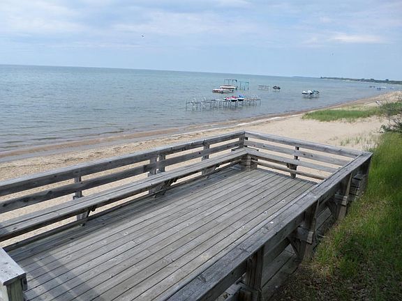 Unbeatable panoramic lake view without paying lake front taxes! Large lot. 800 ft. of community beach directly across the road. Poured cement basement that is very very solid. This property has everything that is needed to make a fabulous cottage or year round home with some remodeling. Remodeling began but unfinished. Agent owned. You will not find another home with the views that this one offers! Priced to sell.