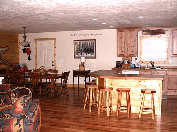 Great Family Cabin with a total of 3 bedrooms plus a large family/bunk room upstairs. This cabin has a large living room and the kitchen is spacious with a large snack bar. It has a laundry/mud room off the back door. You will be impressed with the Oak floors in the living room and kitchen area. Baths are tiled and the bedrooms carpeted. Both bedrooms down stairs are extra large. This cabin is located on a very private and wooded lot. Less than 20 minutes to Yellowstone Park and you are close to Henry's Lake and the Madison River. Good winter access