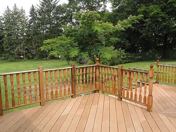 This Home has the nicest yard! The 1.01 acre is almost all flat with big beautiful Pine trees for extra privacy in the back and the side yard. 3 bedrooms with 2 full baths on the main living area. Large eat-in Kitchen with doors leading out to the back deck, great for entertaining. Lots of room in the yard to put in a pool. Finished Basement ( Family room ) with a large half bath. Driveway is totally flat.