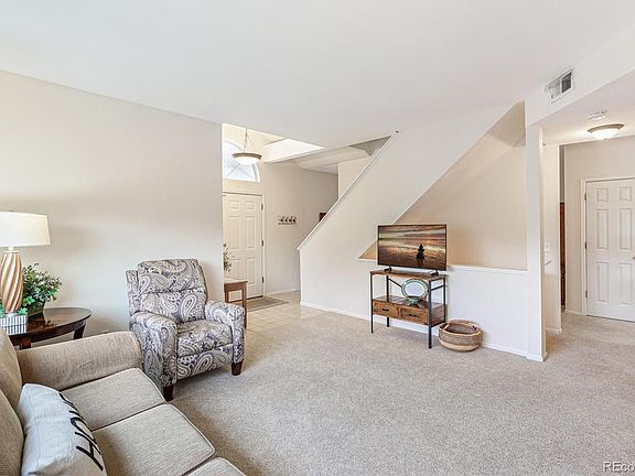 This beautifully maintained townhome-style condo, bathed in natural light with soaring ceilings, is located in the rarely available Estates at Meadow Hills community, just steps away from Meadow Hills Golf Course and Carson Park, and minutes away from Cherry Creek State Park, and Quincy Reservoir for outdoor enthusiasts. The moment you enter, you'll appreciate the meticulous care that has gone into this lovely home, featuring new Levolor solar shades (2024), plush neutral carpeting (2023), fresh paint throughout (2022), and upgraded energy-efficient Anlin windows with double-pane low-E glass (2024) on most of the main level, making this home both practical and luxurious.