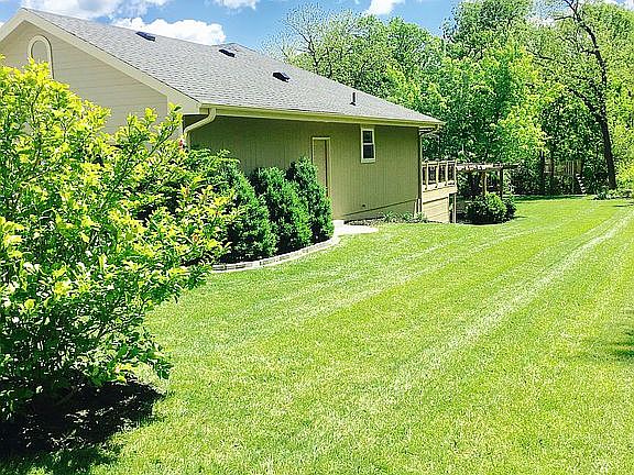 Call Jay 785-633-7374 to view this beautiful 4BR, 3 BA home on a huge lot that backs up to trees and a creek. Lots of curb appeal and outdoor living with landscaped flowers, fruit trees, concrete patio, fire pit, and pergola. Custom Wood cabinets in kitchen and in both bathrooms on main floor. Large master suite with walk-in closet. Bathrooms updated 2017, large 16x16 deck built in 2015 with secret storage under the deck. Fully finished daylight basement offers lots of natural light, 4th bedroom with large private bathroom. Main floor and basement laundry hookups. New roof in 2011, new water heater in 2015, exterior paint fall 2016. Smart home, All new LED lights throughout. Central vac plumbed and yard sprinkler system. Tree house. Competitive Price