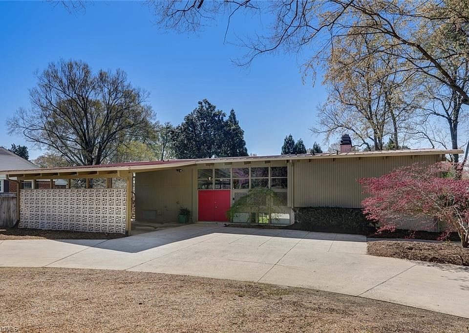 4003 W. Friendly Avenue is a MIDCENTURY MODERN DREAM! Designed by renowned local builder John Hiatt in 1962. Beautifully restored to provide you with luxury mid-century living! With unique period features, this updated home will give you the architectural interest you desire and the comfort you need. On an ample .69 acre lot, this modernist home has 4 bedrooms and 3 full bathrooms. Exciting original features include 2 kitchens, a ballroom, 2 fireplaces, and even the studio used by the home’s architect. Meticulously renovated, enjoy comfortable living with a new furnace and HVAC, a recently painted exterior, and new irrigation system maintaining professional landscaping. Outdoor living space includes a fenced-in backyard, expansive deck and concrete patio, brick garden courtyard, and granite bocce court. In the heart of Starmount Forest, this home is situated blocks from Friendly Shopping Center featuring many of your favorite stores, and minutes from Greensboro’s beautiful downtown.