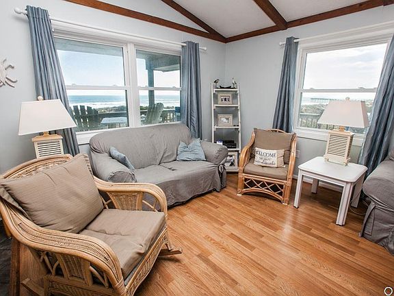 Great oceanfront family vacation home in a quiet neighborhood! Gorgeous ocean views and a boardwalk from your home over to the adjacent beach access; the shoreline is just a walk over the dune. The top floor features a bright, open plan design with attractive beamed ceilings, a comfortable family area and newly renovated kitchen cabinetry and appliances. Just outdoors, there's a covered porch and sun deck from which to enjoy panoramic shoreline sights, beach sounds, and salt air. The second floor features a king master, two additional bedrooms, a relaxing den/media area, a screened-in porch, and a hot tub. You'll enjoy a "front seat" to the beach, the privacy of an "off the beaten path" neighborhood, and easy access to area shopping, dining, and attractions.
