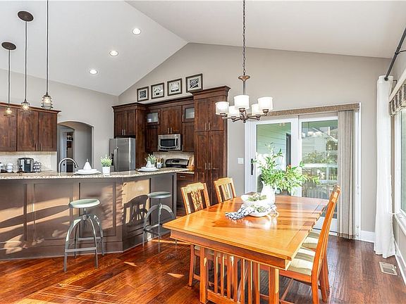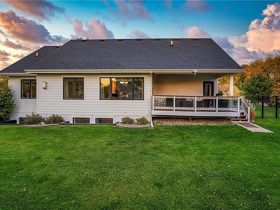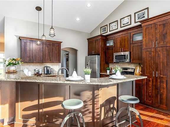 Beautifully appointed interior & exterior spaces in this 5 bedroom ranch in Timberline Village. Quality finishes throughout open plan. Vaulted great room with fireplace, kitchen & dining room with hardwood floors and tons of windows. Upgraded kitchen cabinets, stainless appliances & granite counters. Owners suite with wainscot statement wall & bath with dual vanity, tub & tiled shower leading to custom system closet. 2 additional main floor bedrooms served by hall bath. Main floor laundry and drop zone with bench. Finished lower level with family room with bar, 2 bedrooms, bath & incredible storage and workshop areas. 3 car attached garage with custom storage. Low maintenance covered deck overlooks .36 acre fenced yard with irrigation system & landscaping. 13 Mo HWA Platinum Home Warranty included.