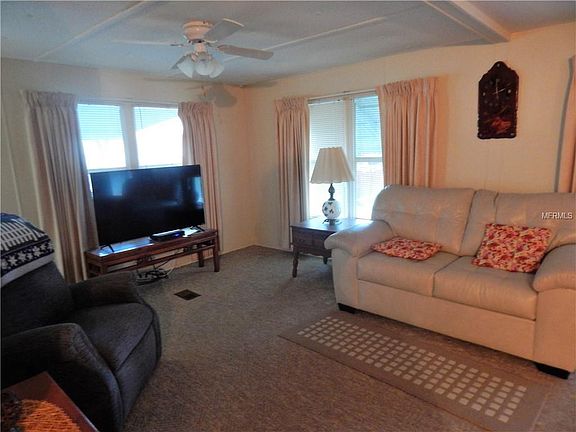 Enjoy the comforts of living in a 55+ community. Welcome to Tidevue Estates this is a land owned park, in a prime location you will love and enjoy relaxing on your lot and 1/2 home with lake Gamble in the rear of the home with beautiful area to sit and enjoy the outdoor birds and the elements. On the side of the home is a covered garage area for your golf cart, and or car for parking. This park has a very affordable HOA annually of $456.00 this covers the pool, pool maintained, and the recreational facilities. This Doublewide has a large walk-in closet in the master room with a bathroom, a second bedroom. 2 exterior shed units for storage can be yours. Meet new friends in this very active community by joining in a game of shuffleboard, bocce ball, pickle ball, bingo. A short 12minute drive to Golf course close by. Community amenities include library, wi-fi connect available, & Fitness room. Convenient location to I-75, Ellenton Premium Outlet Mall, restaurants, medical facility's and beautiful 30 minutes away from the Beaches! Easy show for a guick close for a new Life Style Today!!!
