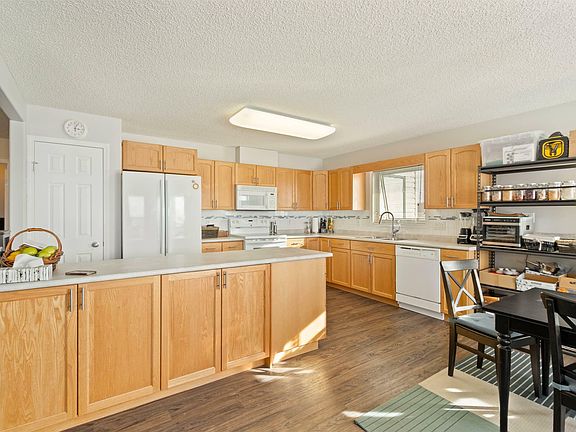 This exceptional top-floor condo is one of the largest and most unique units in town, offering an impressive 1,671 sqft of thoughtfully designed living space. With three bedrooms, two bathrooms, and air conditioning, it provides both comfort and functionality. The expansive wraparound balcony, featuring both south and west exposures, extends the living area outdoors and includes two convenient storage rooms. Recent updates enhance the home's appeal, including fresh paint and stylish new vinyl plank flooring. The spacious kitchen is a chef's dream, complete with an island, abundant cabinetry, and extensive counter space. The open-concept dining and living areas create an inviting and atmosphere, perfect for both relaxation and entertaining. The huge primary bedroom includes a large walk-in closet, while the oversized ensuite offers a large linen closet, and dual sinks. Additional conveniences include an in suite storage room and laundry with a sink and underground heated parking!