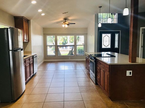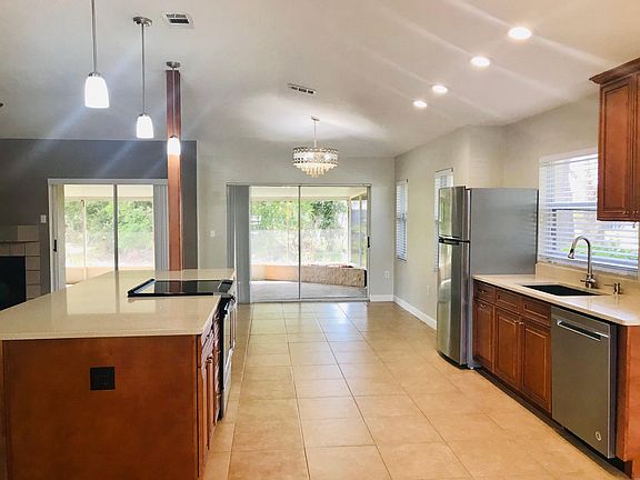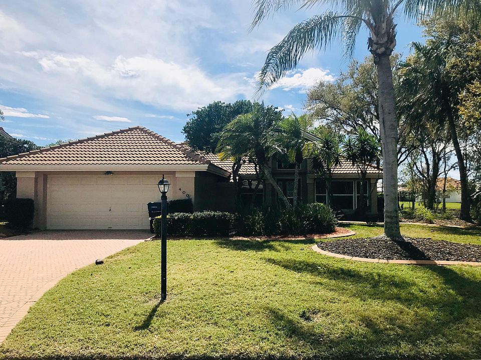 Executive home in The Trails close to University Parkway Spanish/Med style in this quiet tucked away neighborhood. community area with pool and tennis courts all near great shopping and restaurants. Light and bright 3 bedroom, 2 baths. Master Suite with sliding glass doors outside and the master bath has double sinks, walk-in shower plus a nice sized walk-in closet. The open great room floor plan also has a huge bar at the kitchen and separate formal dining room area. Huge screened and covered brick patio with wonderful view plus has an inside laundry room and over-sized two car garage. Easy showings available. Lawn care included by owner. Owner maintains the Lawn and Landscape