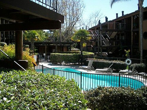 Great location close to everything, yet tucked away off the main road. 1600 sq. ft. 2/2 with 1 car garage. Pool, Jacuzzi, & BBQ area. A must see to appreciate! Large condo with Wet bar in dining area, large patio with 3 sliding glass doors, 2 in front room, & 1 in second bedroom. Large master bedroom with super-long closet. Master bath completely tiled, has separate vanity & tub area from commode & shower area. Washer & Dryer hookups. 1 car garage & 1 assigned parking space in gated community.Â