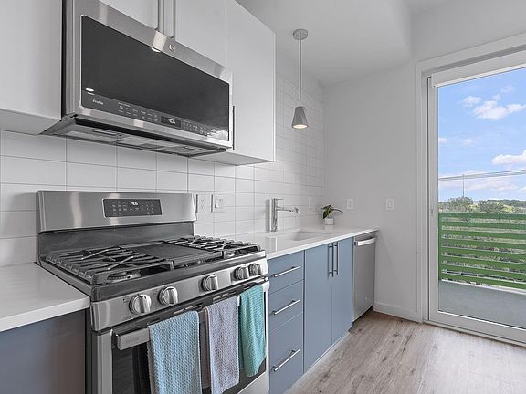Gas cookingOversized windowsHigh-end finishesStainless steel appliancesSweeping unobstructed viewsModern layoutCorner studio