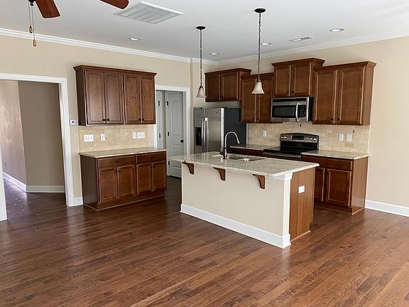 Former model w/some of those extra special touches! Higher end, deeply veined granite countertops in kitchen & all baths. Soft close drawers & cabinets in kitchen. Ceramic tile backsplash & plantation shutters on downstairs windows. Newer disposal. Fabulous textured engineered hardwoods as well as real wood treads on stairs. The garage is oversized for shelving or larger vehicles. Generous sized bedrooms! Walk in laundry area w/overhead cabinets. Multi-zone Thermostats. Piped gas line for grill. Security deposit of $1,850 is required. Up to 2 small pets are allowed with non-refundable pet deposit of $250 per pet. Electricity, gas, water, garbage service are tenant's responsibility. No smoking indoors and follow HOA's parking ordinance.