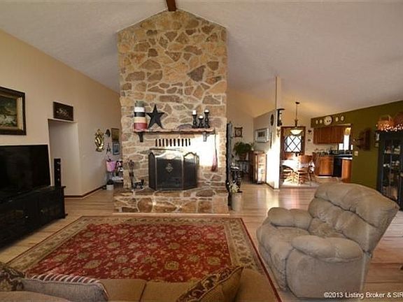 Lodge retreat living on 2 acres.. just 3 minutes to shopping.. Located on beautiful Chapel Lane, the country quiet atmosphere is obvious as your drive into the long driveway with great trees as you admire the lodge like architecture and windows that the home offers. The floor to ceiling stone fireplace is open to both the living and family rooms. Awesome laminate floors!! The master has walk in closet and private bath. The other 2 bdrms are nice sized.with lots of large closets. You will love the upgraded fans in great room area. Baths have been remodeled. The kitchen is full of country charm & lots of cabinets. Huge covered back deck allows hours of back yard entertaining .Picket fence is perfect flower garden ( Ky State Fair award winning roses) 2 car garage & great new landscaping. new concrete pad in driveway close to home. WIRED for generator..10 x 12 x 12 yard barn
