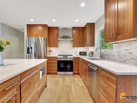 Recently remodeled (2022) Turnagain ranch style home on a corner lot. Updated heating and plumbing, hardwood flooring, new kitchen with Cherry cabinets, open floor plan, quartz counters and an island. There is a main bedroom with a separate bath and two other bedrooms. Great yard and a double car garage. Close to outdoor recreation and cultural activities.
