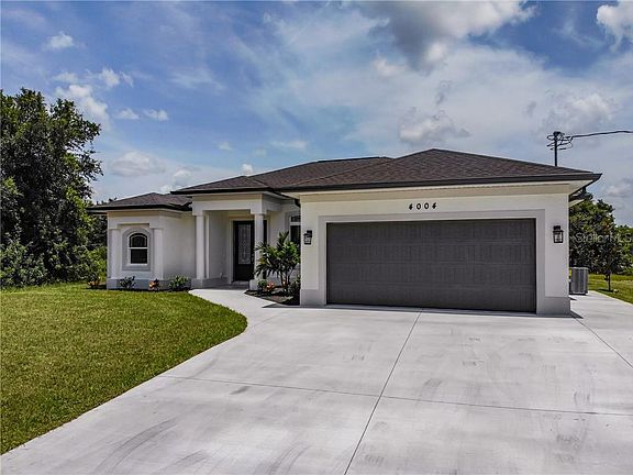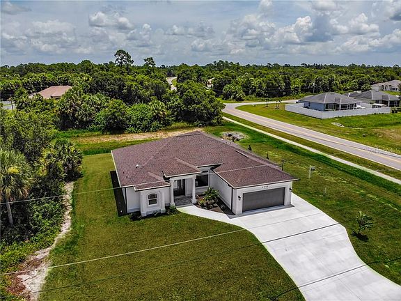 AMAZING BRAND NEW 2020! You will LOVE the high end quality finishes in this spacious three bedroom THREE bathroom home on CITY WATER! IMPACT WINDOWS all around as well as rain gutters. Super high ceilings make the home seem larger. Almost 3000 Square feet under roof! The fantastic kitchen boasts solid wood cabinets with "soft close" doors and drawers complemented by exquisite granite counter tops. Matching SMART APPLIANCES, a convenient pantry, PLENTY of cabinet and counter space, and a "Pot filler" piped in over the stove make this kitchen area second to NONE! YOUR HUGE owner's suite opens to the spacious lanai where you will love the Italian porcelain tile pattern. "Pocket style" impact sliding doors will give you the full opening to catch that cool breeze through the home. Relax and soak in your oversize garden tub or have a quick rinse off in the large walk in shower with modern fine tile floor to ceiling. You will LOVE the fabulous super long dual sink basin vanity with "soft close" doors and drawers. The desirable tray ceilings and extra recessed lighting afford that extra touch of class in your retreat. Plenty of parking in your EXTRA WIDE driveway. Sidewalk extends around home to a separate rear entrance. Large bedroom with spectacular third bathroom boasting double sinks and a walk in shower tiled floor to ceiling. The adjoining large flex room would pair nicely with the third bedroom and bathroom making a sort of mother-in-law suite if desired. You will appreciate the designer paint color scheme and how well ALL the finishes, flooring, and cabinets blend perfectly through out the entire home. Whole home central vacuum system makes floor cleaning super easy. The dual flush toilets can save you a lot of water over time. Termite bait station system in place on the exterior. Eight foot tall extra wide front entry door with leaded glass type window and stately front porch pillars make for great curb appeal! The owner's meticulous dedication to quality and good taste shine in this wonderful home. Call for a private showing today. Conveniently located to North Port and Port Charlotte. You are literally minutes from restaurants, grocery stores, shopping, and I-75 access.