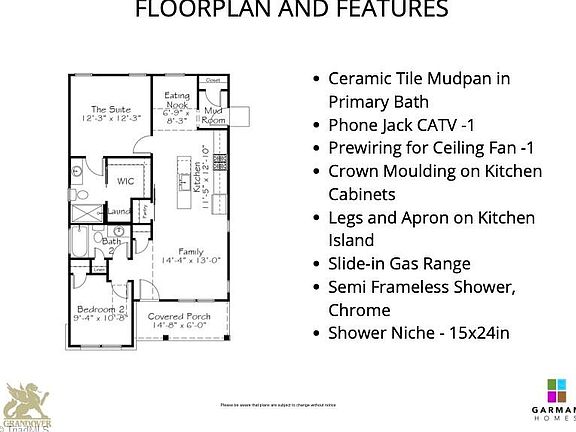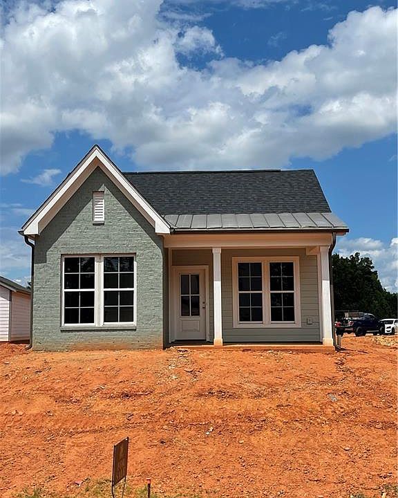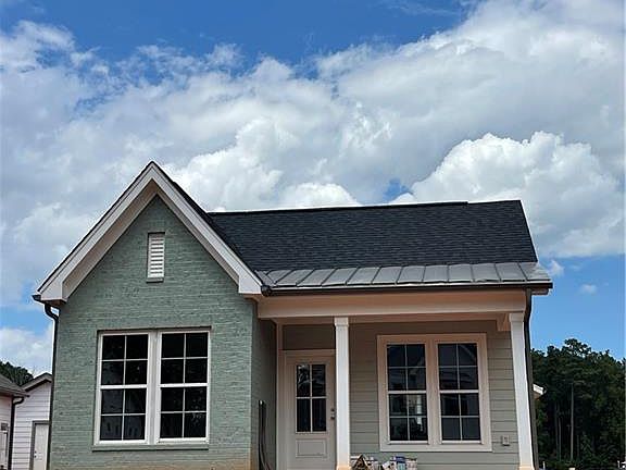 The Montauk C with painted brick accents. Destination Cottage by Garman Homes in Montrose Village at Grandover. Accepting owner occupant offers at this time. Features 9' smooth ceilings, soft-close doors on all cabinets, a tankless water heater, a kitchen with granite countertops and stainless steel appliances. All color selections have been curated by a professional designer. Single car detached garage, Montrose Village HOA includes lawn maintenance, Grandover HOA includes Community pool and racket club on Pemberton with Fitness center, playground, clubhouse, and tennis courts. Tax value undetermined since the property is new construction. Other opportunities are available to build/customize on other homesites. Model is open 10-5 Mon-Sat & 1-5 Sunday