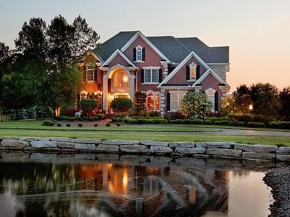 Immaculate Executive Estate. This pristine property features 5,600 SF home along with a 4000 SF Barn/Warehouse and a 1500 SF carriage house w/full Bath & 6 rooms perfect for a extra living or workspace. Home includes 5 BR, 5.5 BA. Gourmet kitchen w/Cabernet Cherry Cabinets, granite tops & hardwood floors throughout. The grand 2 story Great Rm. Leads out to a gorgeous outdoor entertaining area complete w/waterfall, fireplace & Stone bar. Home is perfect for entertaining w/lower level kitchen, recreation room & home theatre. Estate is situated on over 10.5 acres with 1 acre stocked pond. Shows like a model! 3.1 miles to New Albany,20 minutes to Polaris or Easton. Owner/Agent
