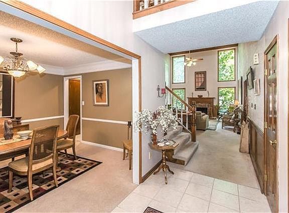 Gladstone Address! Outstanding 1 1/2 story in Brooktree. Original Model. 4 BR, 2 full bath & 2 half bath. Spacious entry. Great rm w/ brick FP, vault ceiling. Library with full wall book shelves and hardwood paneling. Lrg frml din rm. Bay window in MBR suite a luxury bath. W/O lower level has FP, bullins, workshop and lots of storage. Deck and patios.