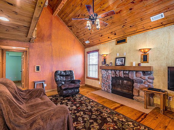 Beautiful & Cozy! This 3 bedroom 3 bath home sitting on 3.54 Acres has the most peaceful and private setting! Home includes hardwood floors, tile counter tops, large utility room, spray foam insulation and 18x24 Metal Barn! Beautiful Rock beds in the front with landscaping!