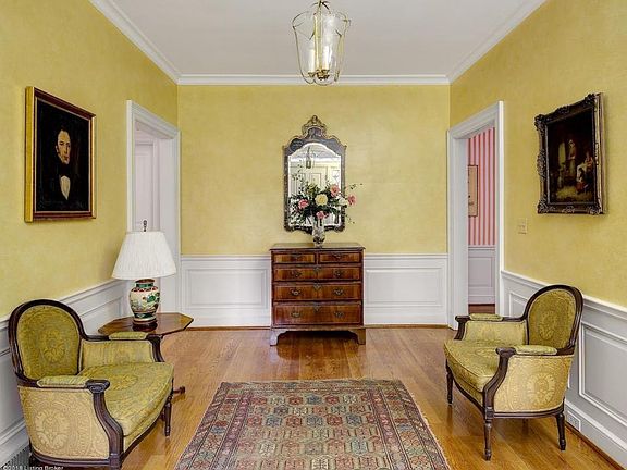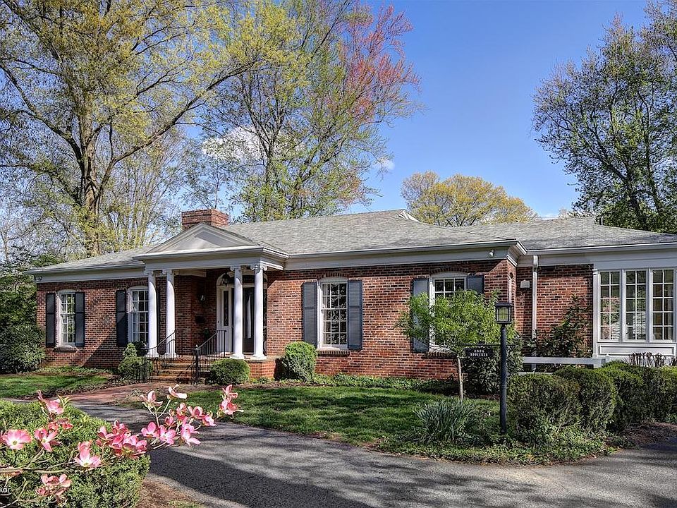 A circular drive welcomes you to this classic home, architecturally inspired and professionally built by Jack Pruitt! Exceptional floor plan with significant moldings, white oak hardwood floors, updated kitchen, new sunroom leading to brick patio and level large yard. Entry hall and 1st floor have 9' ceilings. There are fireplaces in the living room, master bedroom and partially finished basement room. 1st floor master has ensuite bath. Two other bedrooms on the first floor share a hall bath, one bedroom currently used as a den. The 4th bedroom upstairs has an ensuite bath and large closet. Basement includes laundry area, half bath, two recreation rooms and outside entry.