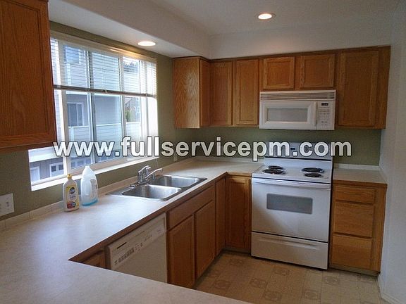The kitchen is set up with all of the modern appliances -- fridge, range, dishwasher, double sink and disposal. There is plenty of counter space for meal prep, and plenty of cabinetry for those Costco runs.