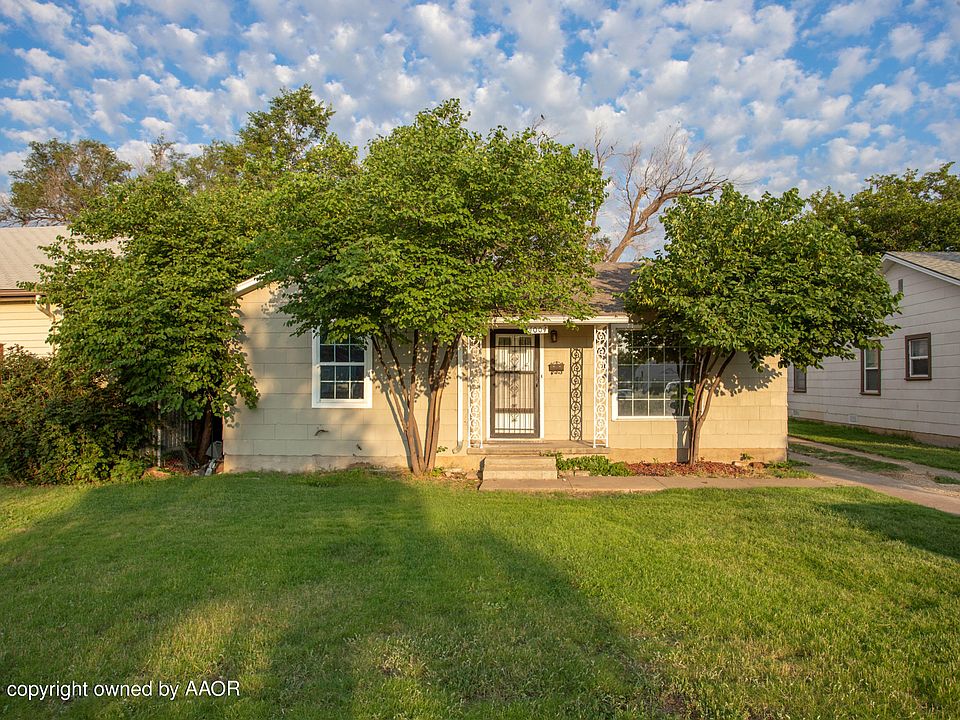 Charming fresh 3 bedroom, 2 bath home with 2 living areas south of town. New Carpet and paint. Isolated Master with its own bathroom. Lots of mature trees. Original hardwood floors exposed in the front bedrooms.