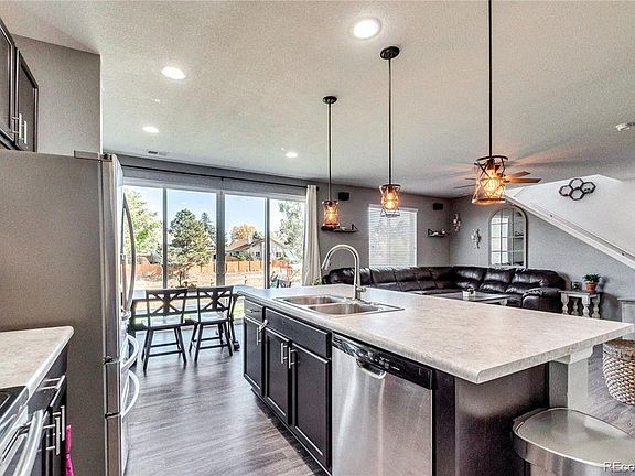 he soaring ceiling in the living room welcomes you as you step into this wonderful, open concept home with engineered hardwoods throughout. The kitchen has a breakfast bar separating it from the dining and living areas providing wonderful space for entertaining.