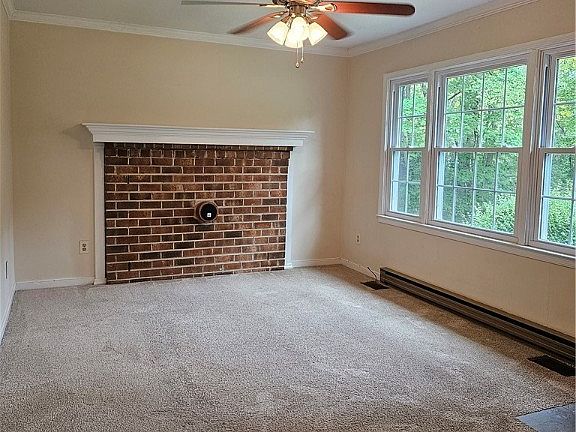 OCCUPIED must have confirmed appointment minimum notice 48 hours, move in date OCTOBER 1, 2025. PLEASE DO NOT GO UPON THE PROPERTY W/O A CONFIRM APPOINTMENT WITH AN AGENT. This 3 bdrm 1.5 bath home offers new eat-in kitchen all appliances included stove/oven, frig with ice maker, ceramic counter top and backlash. Family room with crown molding non working brick fp with mantel, carpet/vinyl flooring throughout, HVAC system with backup baseboard heating, ceiling fans in Fam Rm & MBR. Fireplace off limits. Brick front rancher with vinyl siding sits among trees on a mostly cleared 1 acre lot small shed at the rear of the property. No pets non smoking policy. Property is managed by Norman Investments, LLC and agent is co-owner. A $40 monthly residential benefit program, applies. Credit & background checks performed. Minimum credit score 650; income must be at least $47,700 per APPLICANT. All applications received will be reviewed. Pricing will be giving prior to move in for optional lawn care, landscaping, gutter cleaning, power washing exterior is available at a per trip basis.