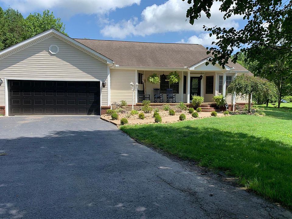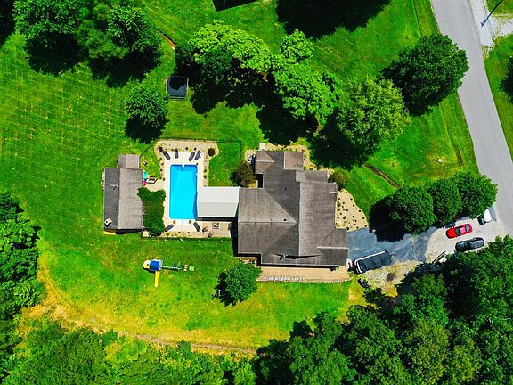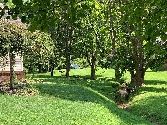This beautifully updated home says WELCOME HOME from the moment you pull into the drive with the covered front porch and the creek that runs throughout the property. You walk through the front door into an inviting foyer and open floor plan greets you with wide crown molding, oak hardwood flooring, neutral paint colors, a large formal dining room and large walk in pantry. A spacious kitchen with commercial grade stainless steel appliances, breakfast bar and breakfast area for plenty of seating for family gatherings. The vaulted ceilings and light fixtures are gorgeous and the marble surround on the gas fireplace in the living room keeps things cozy. The 4 season sun-room off the back of the home features vaulted ceiling and boasts a whopping 700+/- sq ft. The sun-room over looks the cover outdoor entertaining area with stamped concrete and an in-ground heated pool for extended swimming. The pool house features a patio w/ wood burning fireplace, laundry room, bathroom and full kitchen.