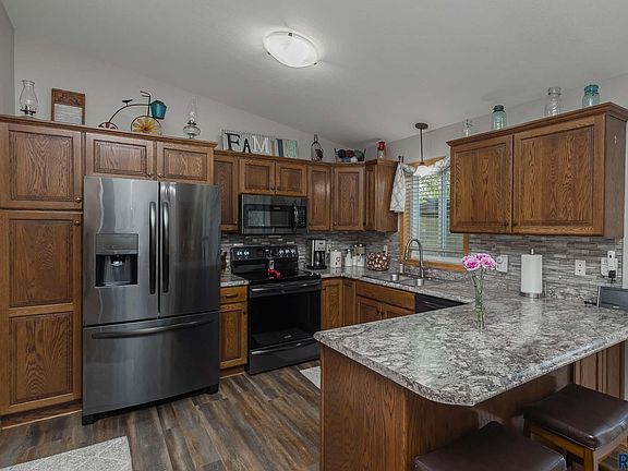 Pride of home ownership in this 3 bedroom, 2 bath southside ranch style home. The south facing covered front porch will welcome you along with the mature landscaping. When you enter through the front door, you will notice the open floor plan and large south facing window in the living room. The kitchen has numerous cabinets and has been updated with new appliances, countertops and backsplash and has a pantry. The sliders off the dining room will take you to a deck with a sunshade, a fenced backyard and storage shed. The main level rounds out with 2 bedrooms with double closets plus a full bath. The basement level has another bedroom, bath, family room and storage. Neutral colors, newer flooring and windows makes this home ready for you to move in!