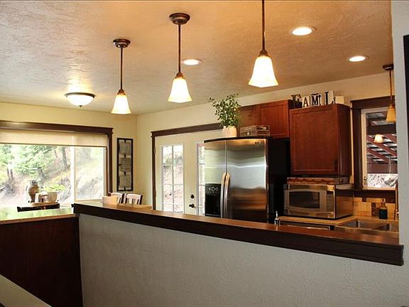 "Out of town living" at its finest in this wooded paradise. Just minutes from town. Completely updated three + bedroom home (potential for 4... just needs closet). Kitchen features stainless appliances and granite counter tops. Tons of parking for all your toys and 26x32 stick-framed shop with cement foundation, R19 insulated, and wood stove.